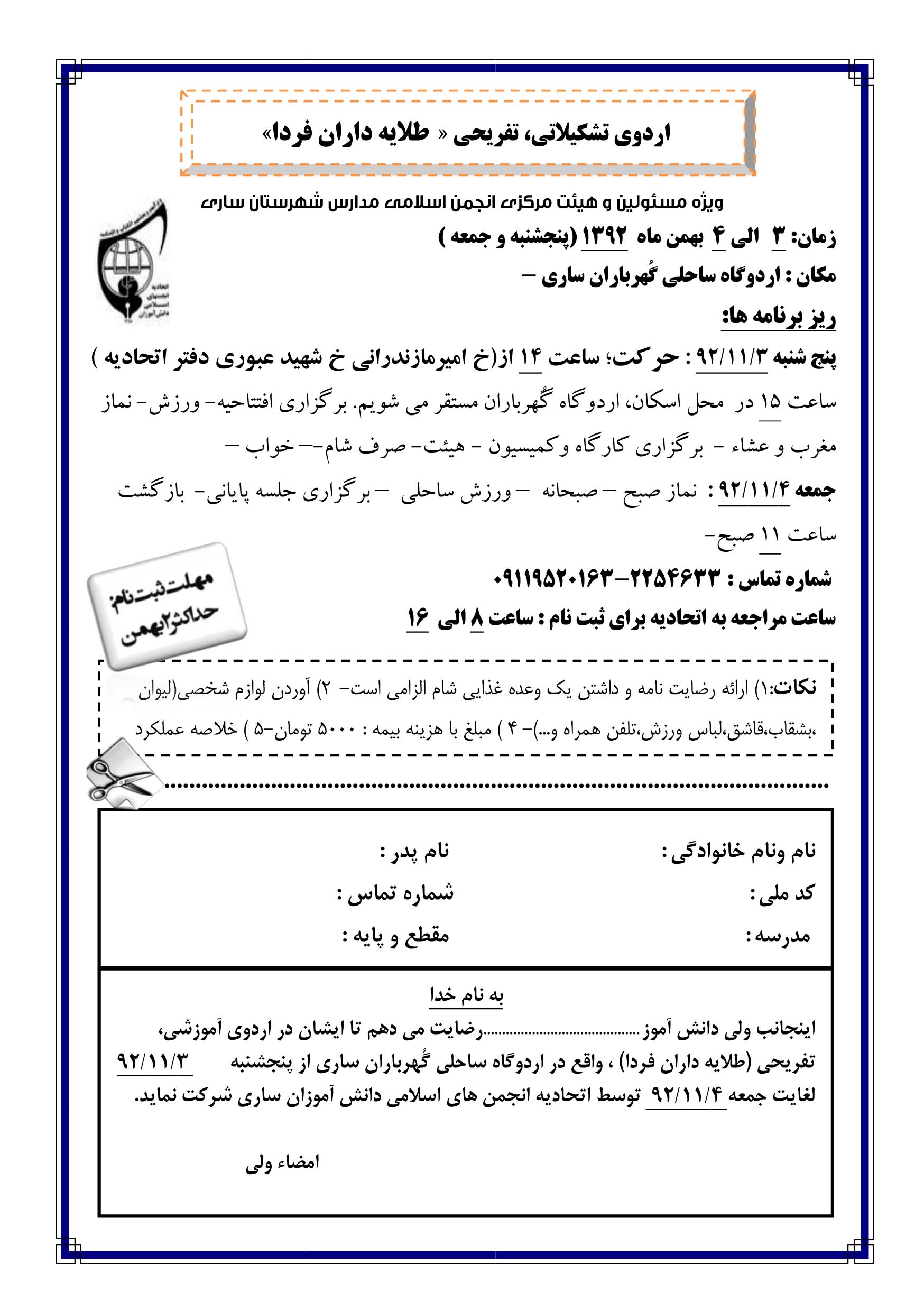 ویژه مسئولین وهیئت مرکزی انجمن اسلامی مدارس شهرستان ساری